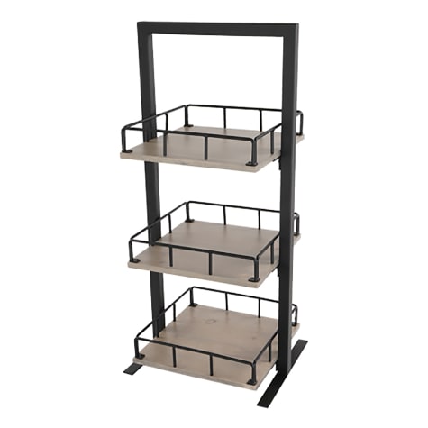Display cookies, chips and other snacks with this stunning Aspen Merchandiser from Cal-Mil! Made of beautifully grained pine wood, the Aspen Collection features a graywashed antique finish and matte black metal accents. Carefully crafted to enhance the natural grain pattern, the gray-wash finish brings a modern twist to a timeless design. The sleek, black frame holds two gray-washed pine wood bins to help you organize fresh fruit, granola bars, or bagged items including chips and cookies!