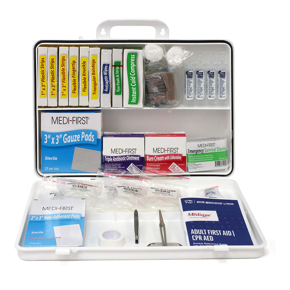 A first aid kit is essential for every home, office, restaurant, or business for emergency treatment of injuries.