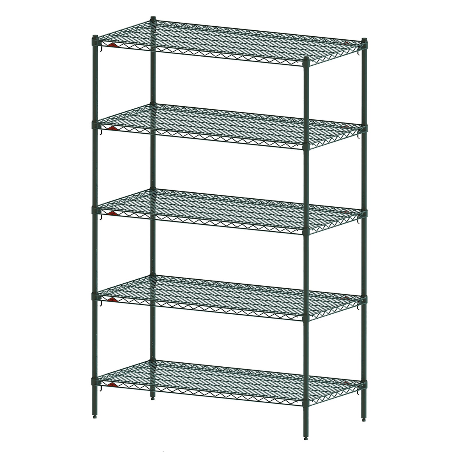 This 24" x 42" Super Adjustable Super Erecta shelving unit assembles easily without the use of tools. The open grid design minimizes the collection of dust and the heavy‐duty construction will hold up to years of use. Not only will they last for years, but add‐on units are available to increase your storage area even more. Antimicrobial properties are built in to inhibit the growth of bacteria that may affect this product. The antimicrobial properties do not protect users or others against bacteria, viruses, germs, or other disease organisms. Always clean and wash this product thoroughly before and after each use.