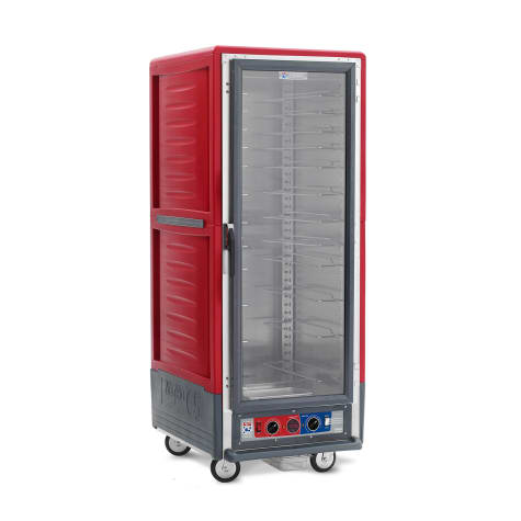 This full height Insulation Armour™ Heated Holding and Proofing Cabinet is a must‐have in the foodservice industry! It features patented insulation technology that retains heat, saves energy and the exterior is cool to the touch. This red holding cabinet also features durable polymer construction and is dent, impact and stain resistant. This cabinet is 71" tall and has a clear polycarbonate door.
