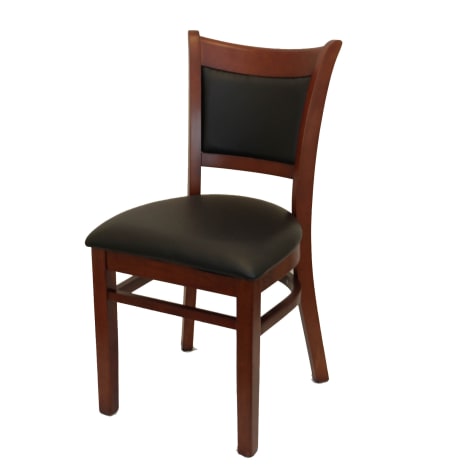 This wood chair from MKLD Commercial Furniture features a black seat and back and is the perfect economical choice for the food service industry.