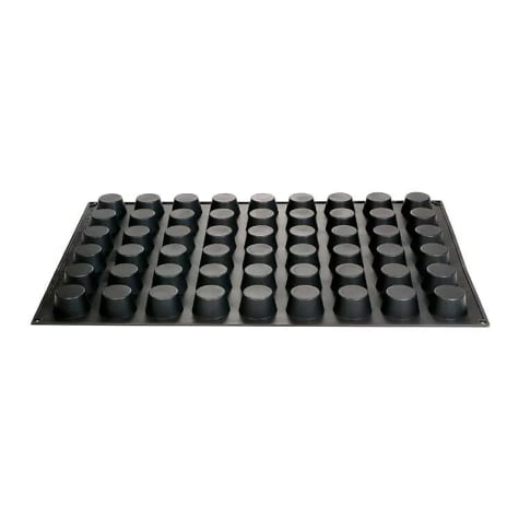 This 54 mini muffin mold is a must-have for busy kitchens! A series of holes have been strategically made throughout the sheet to improve heat distribution and circulation while baking. They can be used in a temperature range of -40° F to 536° F (-40° C to 280° C) and have been designed to accommodate the maximum number of forms per sheet.