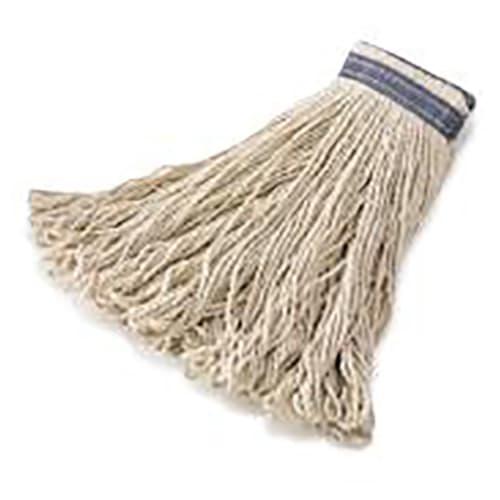 This all‐purpose mop from Rubbermaid Commercial is perfect for general cleaning. The looped ends reduce fraying associated with cut‐end mops and the universal headband fits both side‐loading and clamp‐style handles. Recycled content: up to 100% post‐industrial cotton.