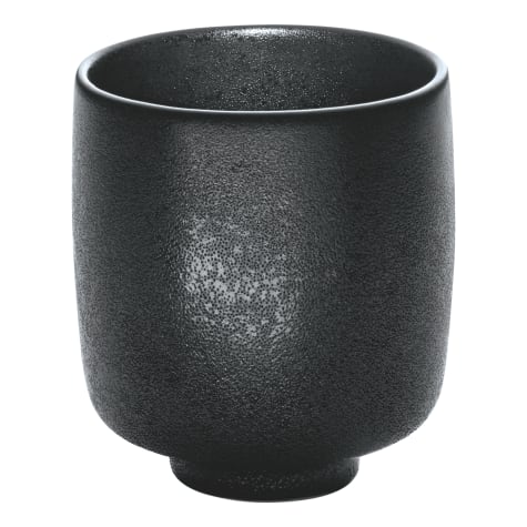 This Playground Nara handleless mug has a black crackled glaze that gives it the look of cast iron for both a visual and tactile experience.