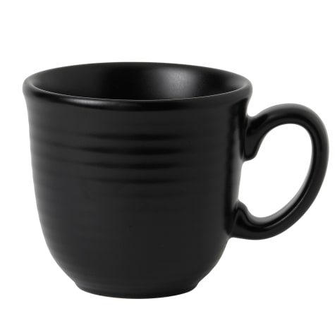 Evo Black has a hand‐crafted rustic style in a variety of shapes and sizes so you can create a collection of your own. This 11.25 ounce mug has a matte black finish that makes a bold statement to any table.