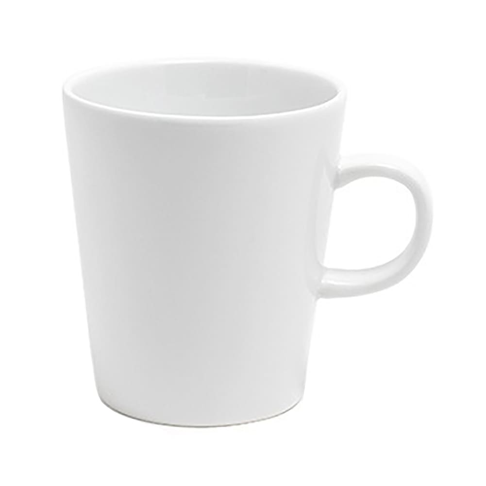 Serve delicious hot beverages in this 8 ounce mug from Front Of The House. It is part of the Soho Collection and features superwhite porcelain construction.
