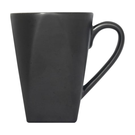 This International Tableware 9 oz mug is part of the Alloy™ Collection and is finished with a Carbon Black reactive glaze, bringing a modern metallic look to your drinkware collection. Crafted from fully vitrified stoneware, its tapered profile and sturdy handle ensure a comfortable grip while maintaining durability for daily use.