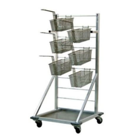 This cart is designed to hold 27 fry baskets. Comes with casters so it can be moved easily.