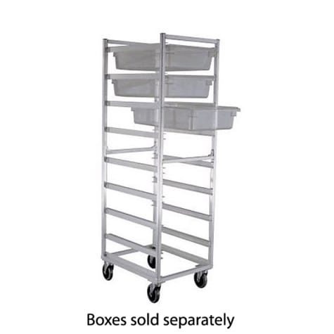 These full height racks are designed to hold 18" x 26" or 18" x 13" poly food boxes. Compatible with food boxes from many different manufacturers including Cambro, Carlisle, Continental, or Rubbermaid. The channel allows storing the boxes with or without the lids. These racks will not hold 18" x 26" bun pans.