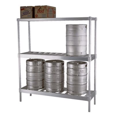 Great for beer storage or dry storage. The shelves are reinforced to handle the abuse of loading and unloading kegs. Features a lifetime guarantee against rust and corrosion and a 5-year guarantee against workmanship and material defects.