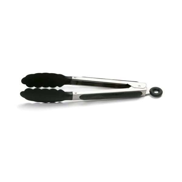 Use these locking tongs when cooking with non stick cookware. Pull up on the hang hole to close and push down on the hang hole to open.