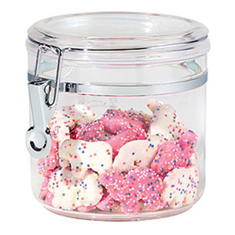 This OGGI acrylic canister will coordinate with any kitchen decor. You can easily see baking supplies, snacks and much more. The chrome locking clamps have silicone gaskets to ensure an airtight seal. Top rack dishwasher safe.