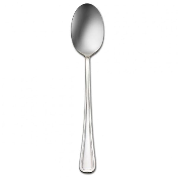 Use this 1880 Hospitality New Rim Banquet Spoon on your table top for a refreshing look. The durable 18/10 stainless steel spoon is carefree and practical.