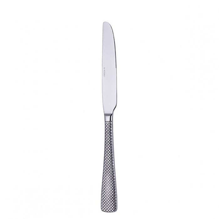 Add a unique look to your tabletop with this dinner knife from 1880 Hospitality. It is 9.5" long and features a beautiful, highly textured handle. It is made from 18/10 stainless steel.