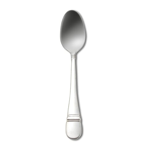 The symmetry and balance of this elaborately crafted after dinner coffee spoon is finished in a fine silverplate. Astragal features prominent architectural bands encircling the teardrop‐shaped handle that is repeated again at the shank. The distinctive design of this after dinner coffee spoon brings an elegant tailored look to your table setting.