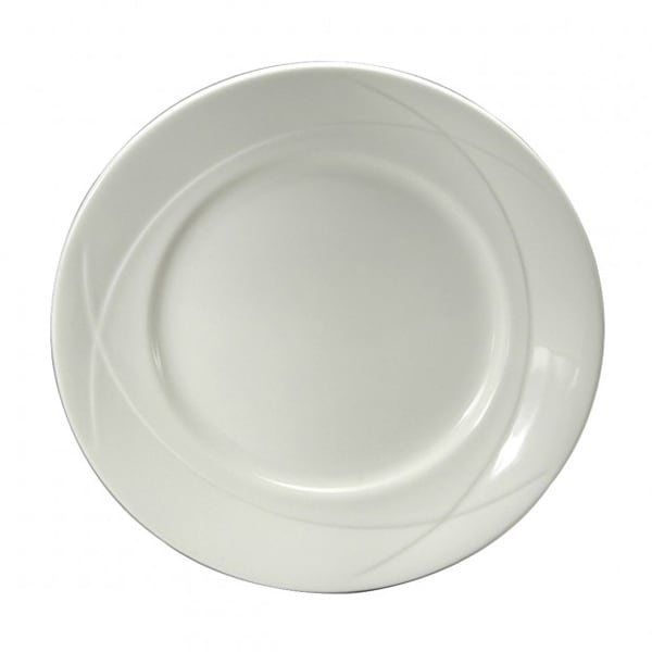 This plate from 1880 Hospitality is part of the Vision trade; collection and features three intersecting arcs on a wide sloping rim. It has a translucent, warm white bone body and will blend with any dining decor. This plate is 11" in diameter and perfect for use in restaurants, hotels or banquet facilities. It also includes a limited 3 year no-chip warranty.