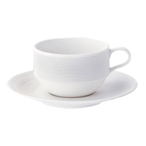 This Manhattan 6.25" saucer from 1880 Hospitality features elegant shapes with a unique gloss well and matte rim that will frame your entree perfectly. Manhattan is designed for finest restaurants service takes top priority.
