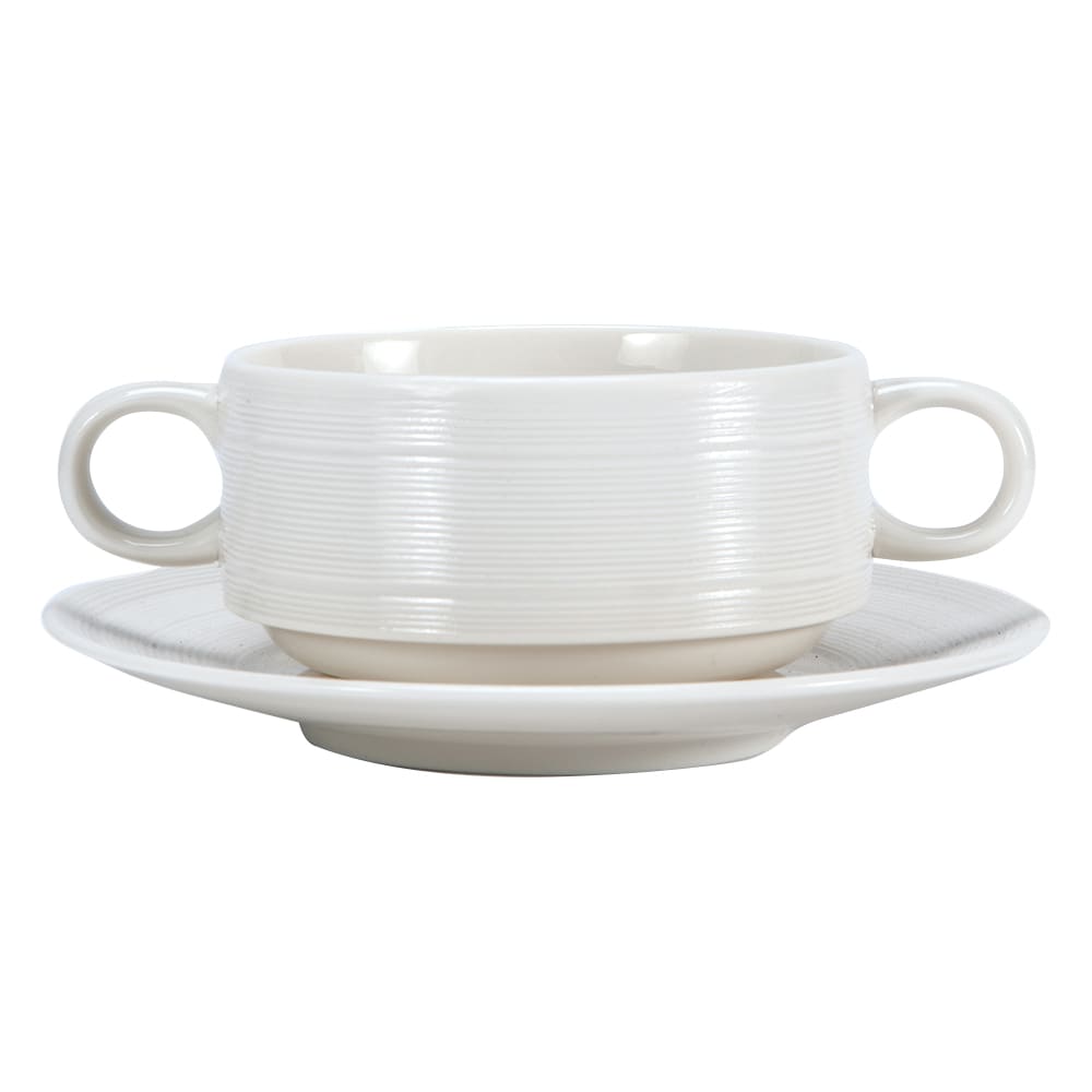 This Manhattan 6.25" soup cup from 1880 Hospitality features elegant shapes with a unique gloss well and matte rim that will frame your entree perfectly. Manhattan is designed for finest restaurants service takes top priority.