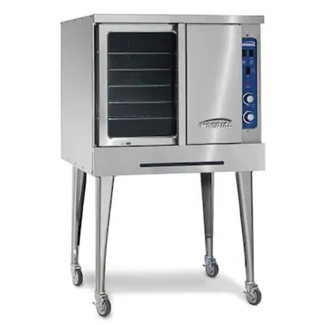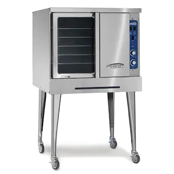 This Imperial Range gas convection oven ensures even cooking throughout the entire oven. Cooked or baked products more moisture and taste better. The porcelain interior is easy to clean and provides better browning. This oven recirculates hot air to maximize efficiency for energy savings. The glass door makes it easy to keep on eye on baking foods.