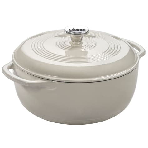 This 6-quart enameled cast iron Dutch oven from Lodge blends timeless design with modern functionality. Finished in elegant Oyster White, it features a smooth porcelain enamel coating that resists stains and reactions with food, making it ideal for marinating, baking, roasting, and simmering. Its cast iron core ensures superior heat retention and even distribution, while the self-basting lid locks in moisture for rich, flavorful results. Dual loop handles offer secure transport from oven to table, and the oven-safe stainless steel knob withstands temperatures up to 500°F. Whether you're crafting hearty stews or crusty sourdough, this Dutch oven is a kitchen essential built to last.
