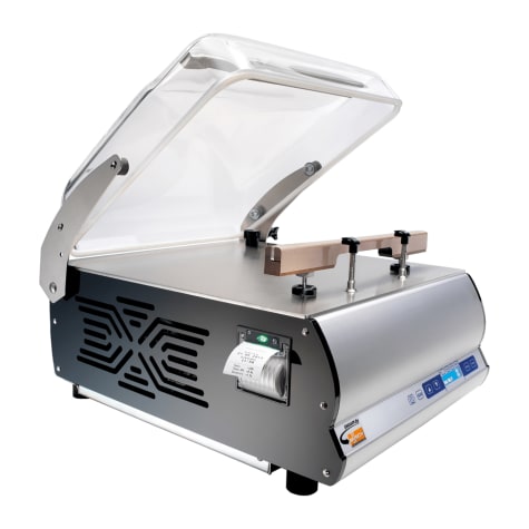 Designed with an intuitive electronic control system, these Vacuum Packers from Univex are easy to clean with a thick transparent plexiglass lid for viewing. The automatic cover lift is operated by pneumatic pistons. Features 8 different savable settings with a pump meter, oil pre-heat, and cleaning cycle. Additionally, there is an oil change warning light, 6 selectable languages, and an adjustable automatic vacuum percentage. The full control vacuum packer is fully equipped with gas injection and multiple thermal label printing options.