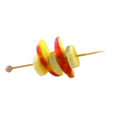 This PackNWood Bamboo Skewer comes in a 5.5" size and has a wooden ball on the end. It is great for appetizers, cocktail garnishes, and more.