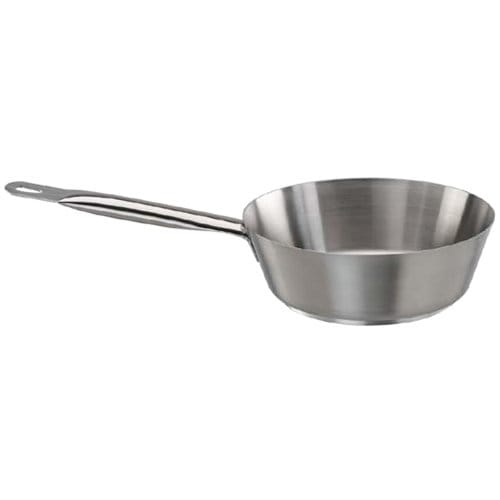 This stainless steel, splayed saute pan has a capacity of 1‐1/4 quarts and is perfect for reducing sauces as its small base heats rapidly, while its splayed sides increase the top surface, in turn allowing for greater evaporation.