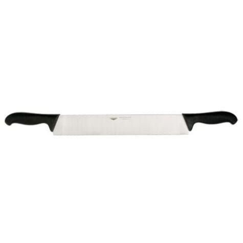 This Paderno® World Cuisine cheese knife has a handle on each end so you can slice big blocks of cheese with ease. The forged carbon and steel blade provides a super sharp edged that will last.