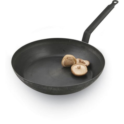 This Paderno® World Cuisine Frying Pan is made from black steel and creates a generous food‐to‐heat ratio, making it ideal for setting, scrambling, and searing.
