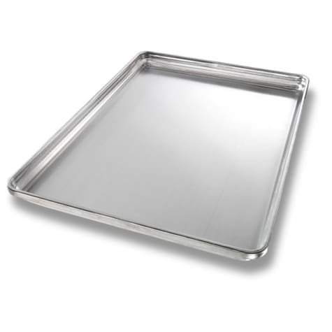 This NSF StayFlat® Sheet Pan is a full-size, commercial-grade baking pan engineered for durability and precision. Constructed of 16 gauge aluminum, this pan features StayFlat® technology which increases pan strength and longevity through sidewalls that are continuously reinforced with a horizontal engineered rib. The NSF certification ensures that this pan meets strict sanitation and safety standards. Measuring 25-13/16" x 17-13/16" x 1", it offers ample space for baking or food preparation.