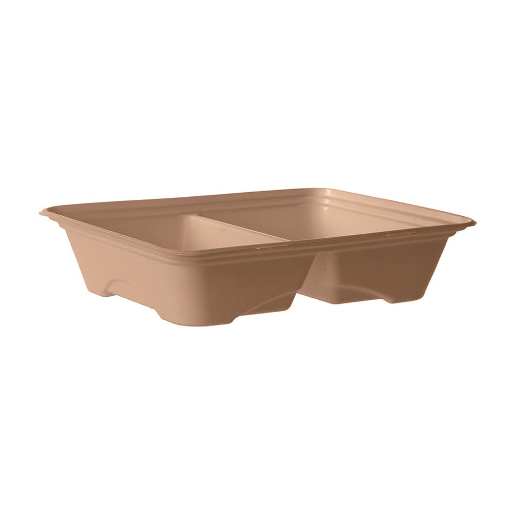 This Regalia™ 2-compartment half size pan from Eco Products features natural sugarcane material and is lined with PLA.