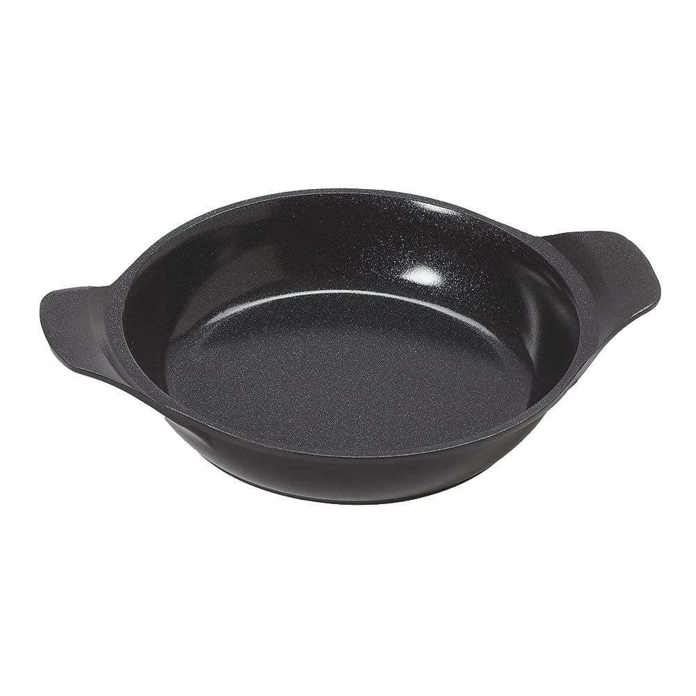 This Heiss® mini induction pan from G.E.T. Enterprises features cast aluminum construction with a clear coating. It is safe for oven, gas, electric, and open-flames.