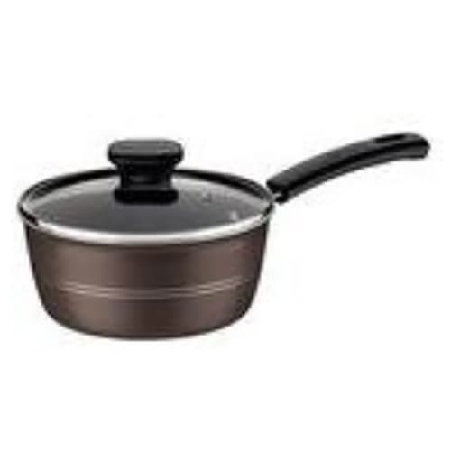 This 2 quart non‐stick sauce pan is made from durable aluminum material and includes a lid.