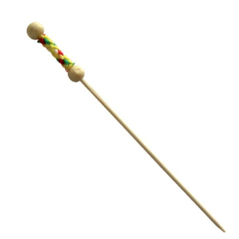 This PackNWood Pick is made from natural bamboo and features a yellow bead design. It is great for serving appetizers at any event. It is eco-friendly.
