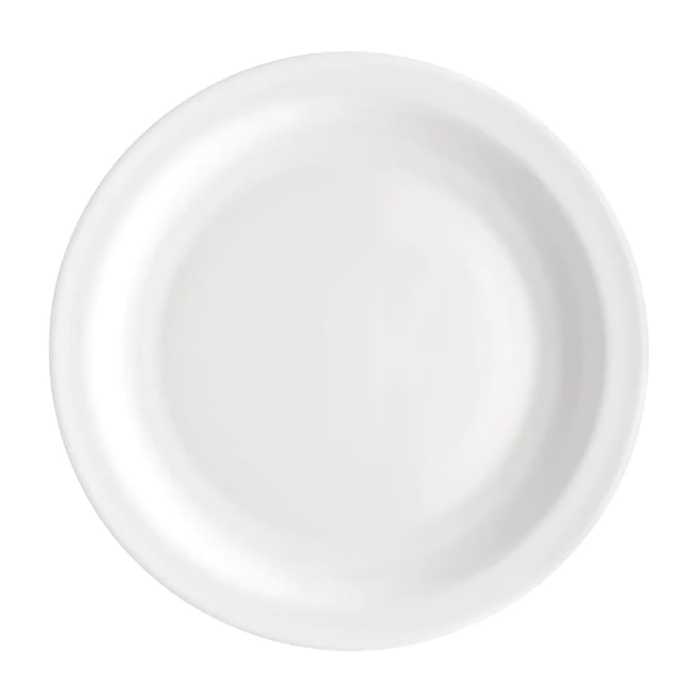 This 9-1/4" plate is part of the Careware Collection by Bormioli Rocco and features fully tempered, milky white opal glass is resistant to breakage and thermal shock, reducing the need for replacement, while its non-porous body provides a hygienic surface for food. The very nature of the material means that these characteristics are preserved over time, remaining unchanged even with intensive use and prolonging the life of the product.