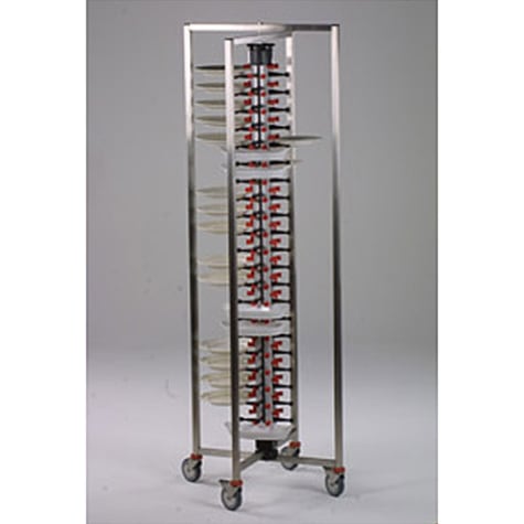 This mobile plate rack from Plate-Mate is a collapsible jack stand that is ideal for banquet serving and banquet plating. It can hold up to 84 dishes and is great for rentals, catering companies and companies that are located in small quarters. This mobile plate rack can be hung on a wall or put in a corner for storage. Powder coated steel frame requires no maintenance. Cleaning can be done with a high-pressure washer or with a brush and soap suds.