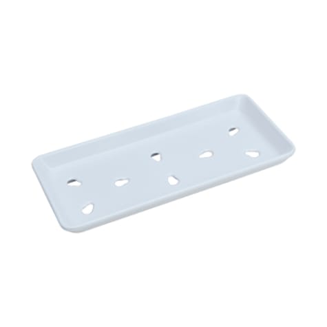 These neta plates are an essential building block for an attractive and functional sushi case. The holes on the bottom allow excess liquid to drain, keeping fish fresher longer, and the high quality melamine construction ensures long term use.
