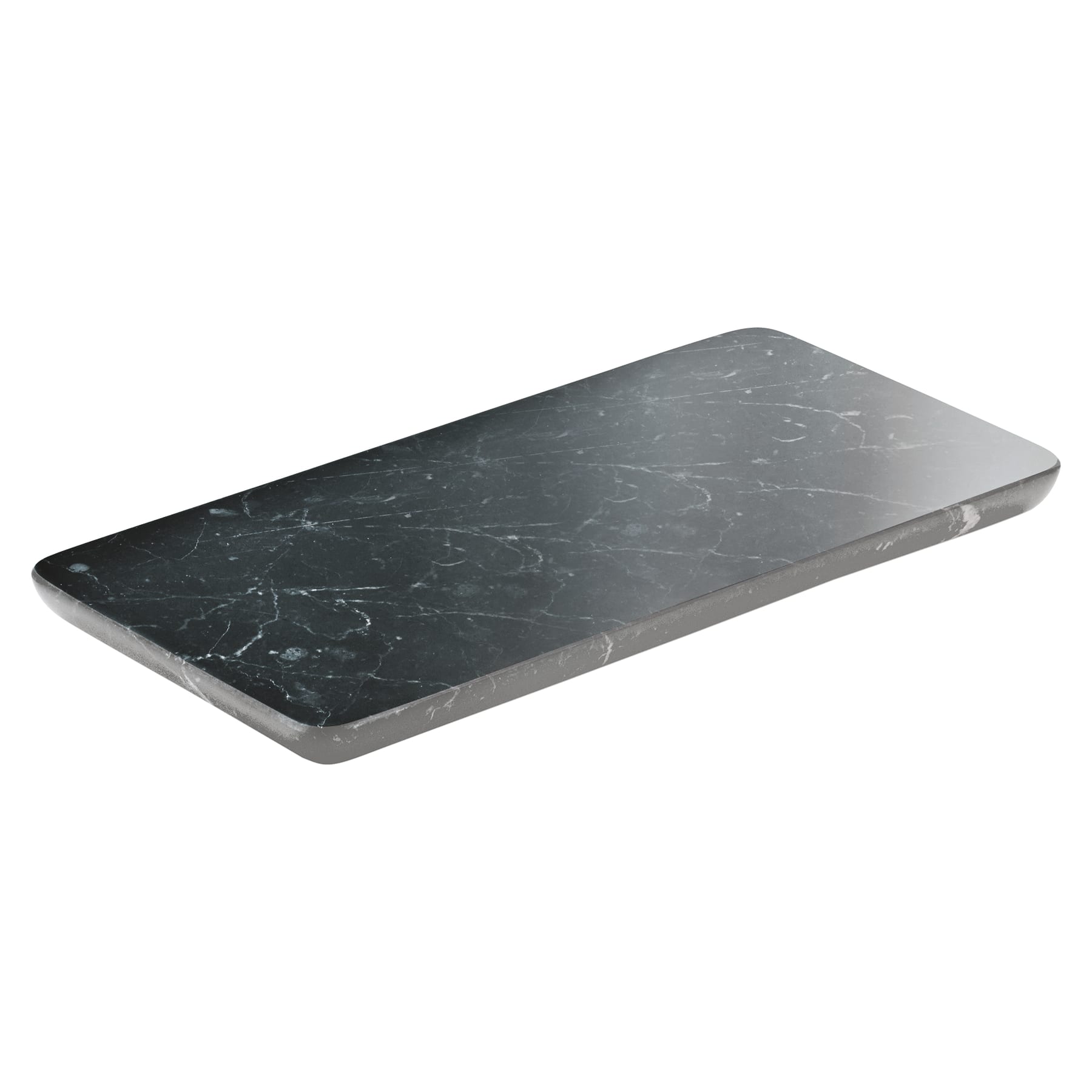 The Ananti collection from Schonwald has pieces in marble, wood, or leather. This black marble platter is durable and makes a beautiful serving piece.