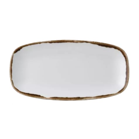 This 11.75" x 6" Chef's Plate from Dudson is part of the Harvest Collection and features genuine hand finished pieces that reflect the 'farm-to-table' philosophy that is so popular in today's dining out culture. Every piece is individually glazed by hand leaving an original 'makers mark' on the reverse, highlighting the handcrafted nature. All pieces also feature a hand finished sponged rim, which naturally drips to create a unique piece.