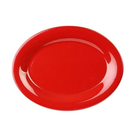 Add a splash of color to your table with this 13.5" x 10.5" oval red platter from Thunder Group! This platter is made from break-resistant melamine material and is perfect for buffets or restaurants.