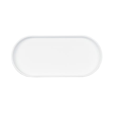 The Cal-Mil 24003-136-15 is a 13" x 6" oval platter from the Hudson Collection, in white melamine. This platter combines elegance with practicality, perfect for serving large entrees in both indoor and outdoor dining environments.