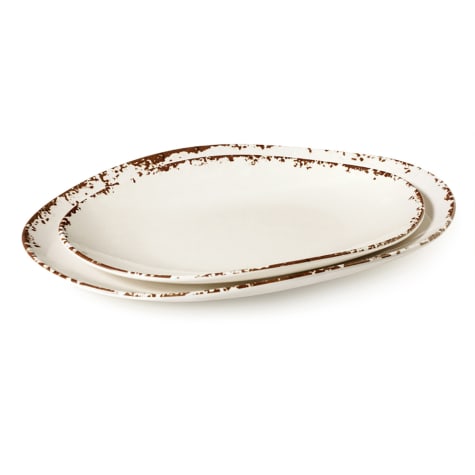 Tuscan serveware from G.E.T. has a farmhouse appeal. This irregular shaped serving platter is lightweight and great for outdoor use.</p>