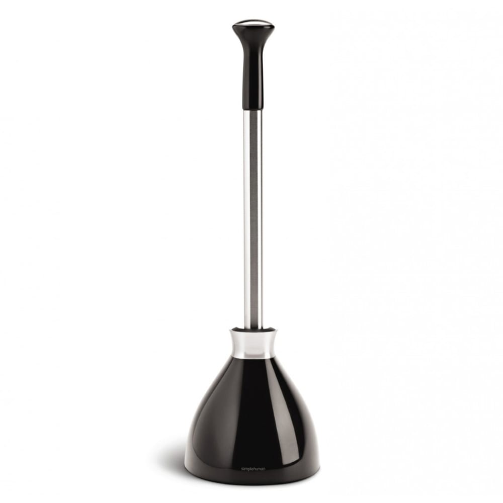 This black / stainless steel plunger from simplehuman features a unique magnetic collar that secures the cover to the plunger so you can carry them together - without a single drip hitting the floor. The dome-shaped cover discreetly hides it.