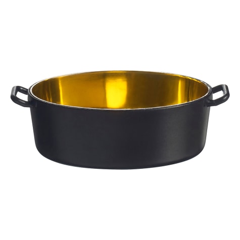 This black / gold 1.5 ounce mini oval cooking pot from Solia is innovative, out of the box, and leaves room for creativity and imagination!
