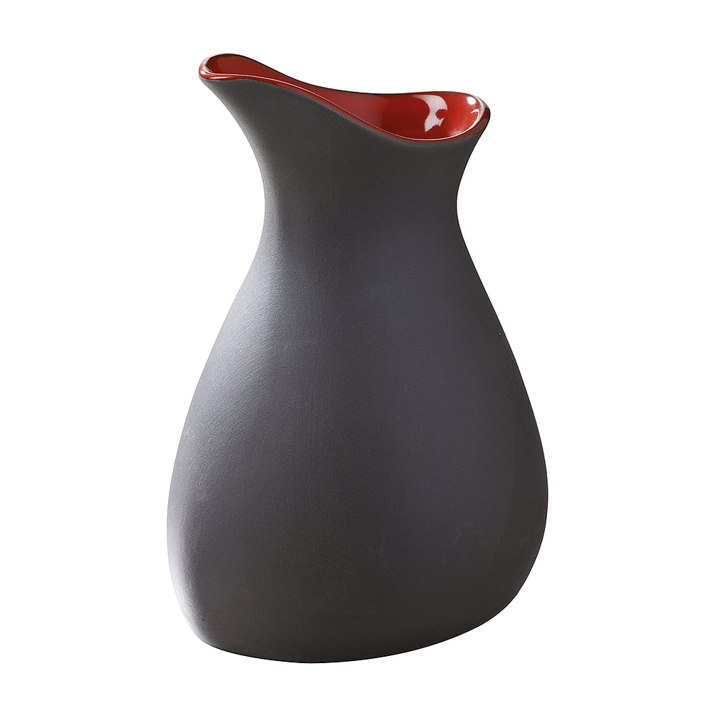 This 17.75 oz. milk pot from Revol USA is part of the Likid collection, and is designed for both professional and home use. Crafted from porcelain, it features a striking red pepper glaze interior contrasted by a black matte exterior, creating a bold and elegant aesthetic. Measuring 4.25" x 4" x 6.5", this milk pot is ideal for serving milk, sauces, or other liquids with precision. Its durable construction ensures heat retention, making it a reliable addition to any kitchen or dining setting.