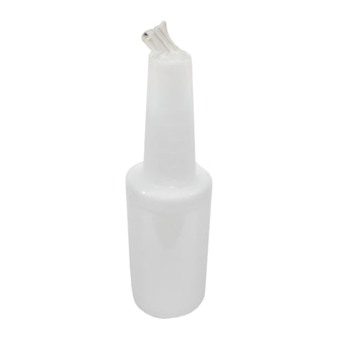 This 1 quart PourMaster Complete bottle from TableCraft includes a container, easy grip neck with snap‐tight pourer and cap for easy storage.