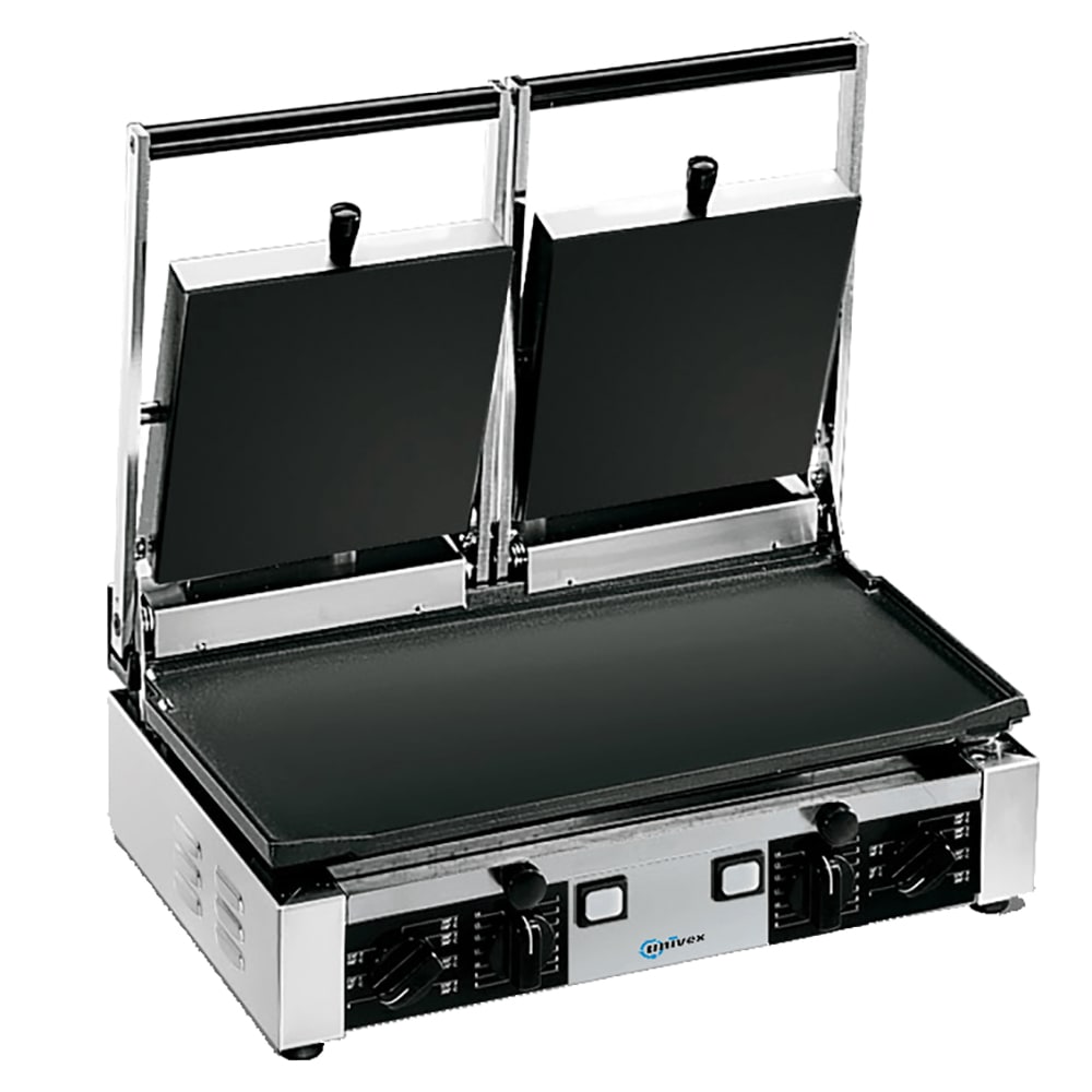 The Univex double panini press is ideal for cooking meat, fish, eggs, vegetables, cheese and any other food that can be grilled. Great for sandwiches of different sizes and thicknesses. The long life cast iron plates to ensure hygiene, acid and salt proofness and resistance to oxidation.