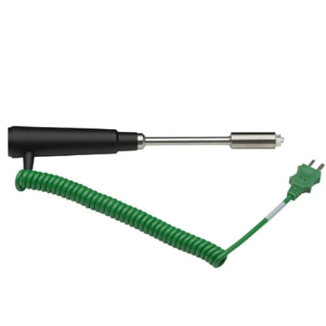 The Comark SK24M heavy duty, surface probe is suitable for measuring high temperatures up to +650°C, fitted with a 1m curly cable. This probe is fitted with a 2‐Pin Sub‐Miniature connector that provides a quick and easy connection to your Thermometer.