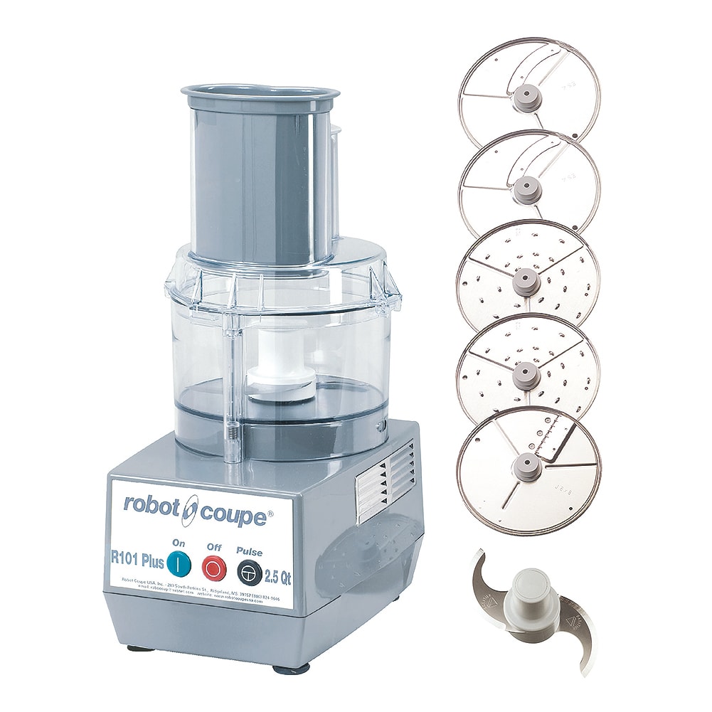 This combination food processor from Robot Coupe is a multi‐function compact tabletop model that is easy to clean and simple to store ‐ even in the tiniest of kitchens. Use the cutter to chop, emulsify, knead, grind and prepare sauces. Use the vegetable slicer to easily slice, grate and julienne for salads, sandwich filling and general daily food preparation.