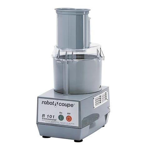 The R101 Plus from Robot Coupe is great for mixing both wet and dry ingredients that can be added while machine is running. The patented blade works on large or small quantities.